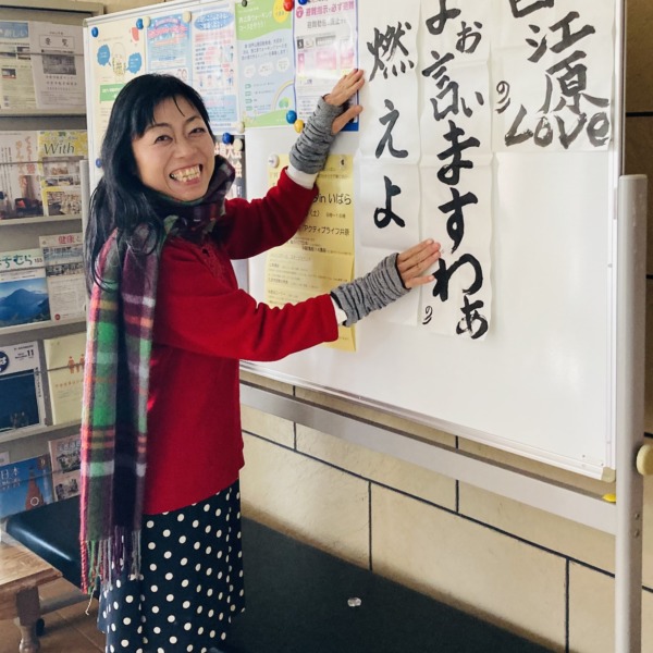 西江原公民館で書初め展示「よぉ言いますわぁ」