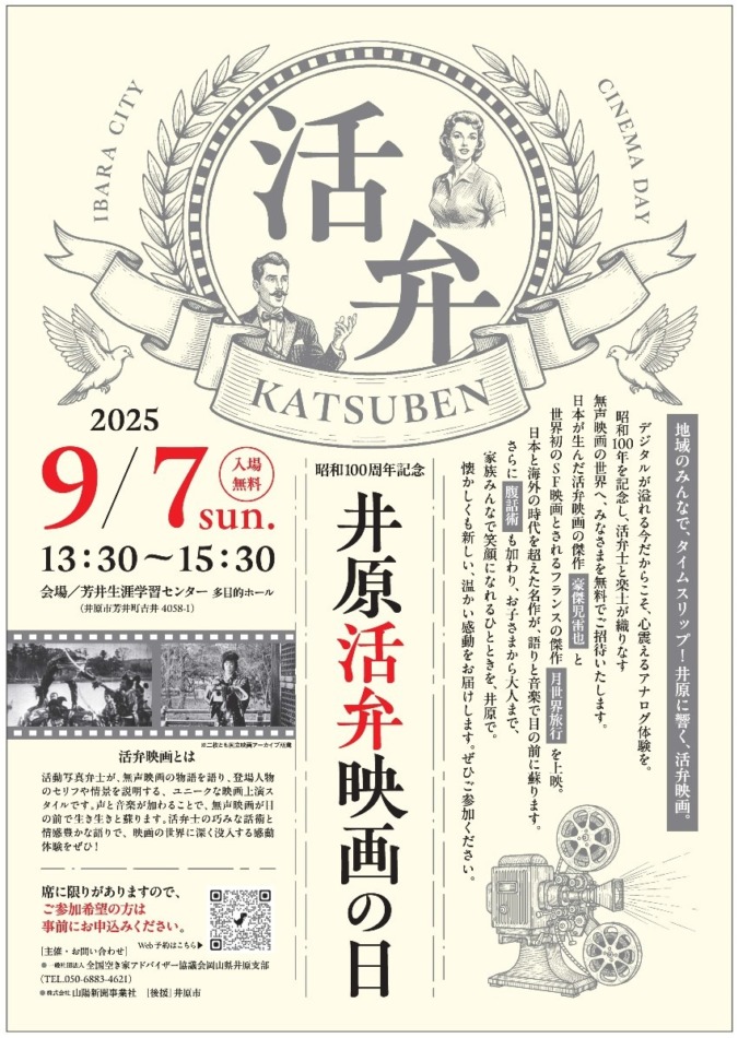 9月7日(日)【入場無料】昭和100周年記念 井原”活弁”映画の日