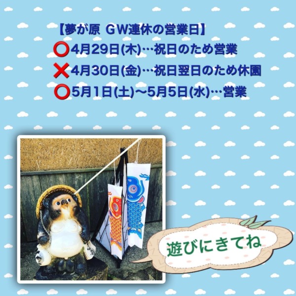 【夢が原 GW連休の営業について】