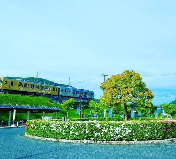 盛土区間を行くアート列車