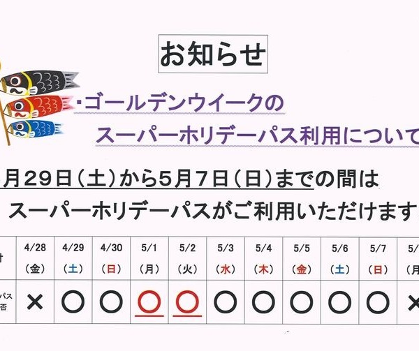 GW期間中のスーパーホリデーパスの利用可能日について